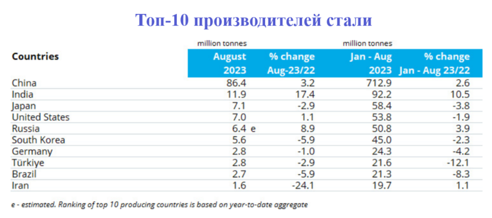 Глобальное производство стали в августе — заметное улучшение по сравнению с прошлым годом. Россия также показывает результат.