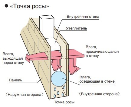 1. Вентфасад обеспечивает вывод влаги за пределы здания и позволяет исправить проблему смещения точки росы внутрь стены.