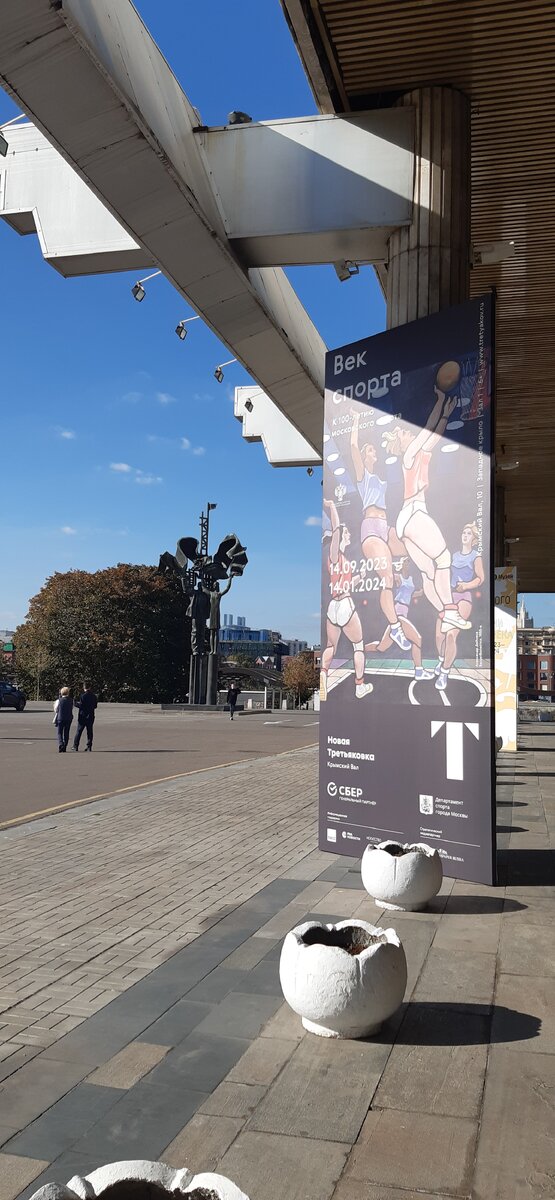 В Западном крыле Новой Третьяковки на Крымском валу с 14 сентября 2023 г. открылась позитивная и креативная выставка "Век спорта. К 100-летию московского спорта". Кстати, в Третьяковской галерее можно посмотреть не только постоянные и временные выставки, но и кино. Художественные и документальные фильмы, связанные с искусством или чем-то отличившиеся, но не идущие в широком прокате, показывают здесь. Чтобы провести время с двойной пользой можно сходить и на выставку, и в кино. Так и сделаем. Спорт на выставке представлен во всех своих видах и в разных произведениях искусства. Это не только картины известных художников, но и скульптура, мелкая пластика, фарфор. Можно бесконечно долго любоваться мгновениями, запечатленными художниками в движении к точке наивысшего взлета энергии тела и духа спортсменов. Выставочное пространство разделено по видам спорта: футбол, хоккей, волейбол, баскетбол, водные виды спорта, вело- и мото-гонки, лыжи, коньки, гимнастика, борьба, шахматы. С 1931 г. в