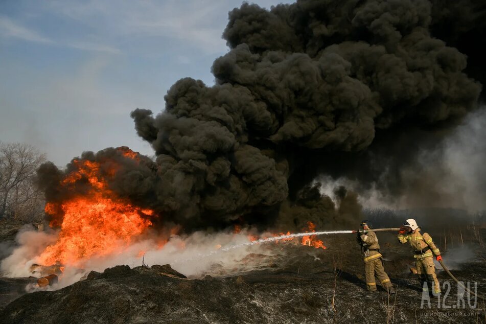 На кадрах — столб огня, а также охвативший склад пожар.