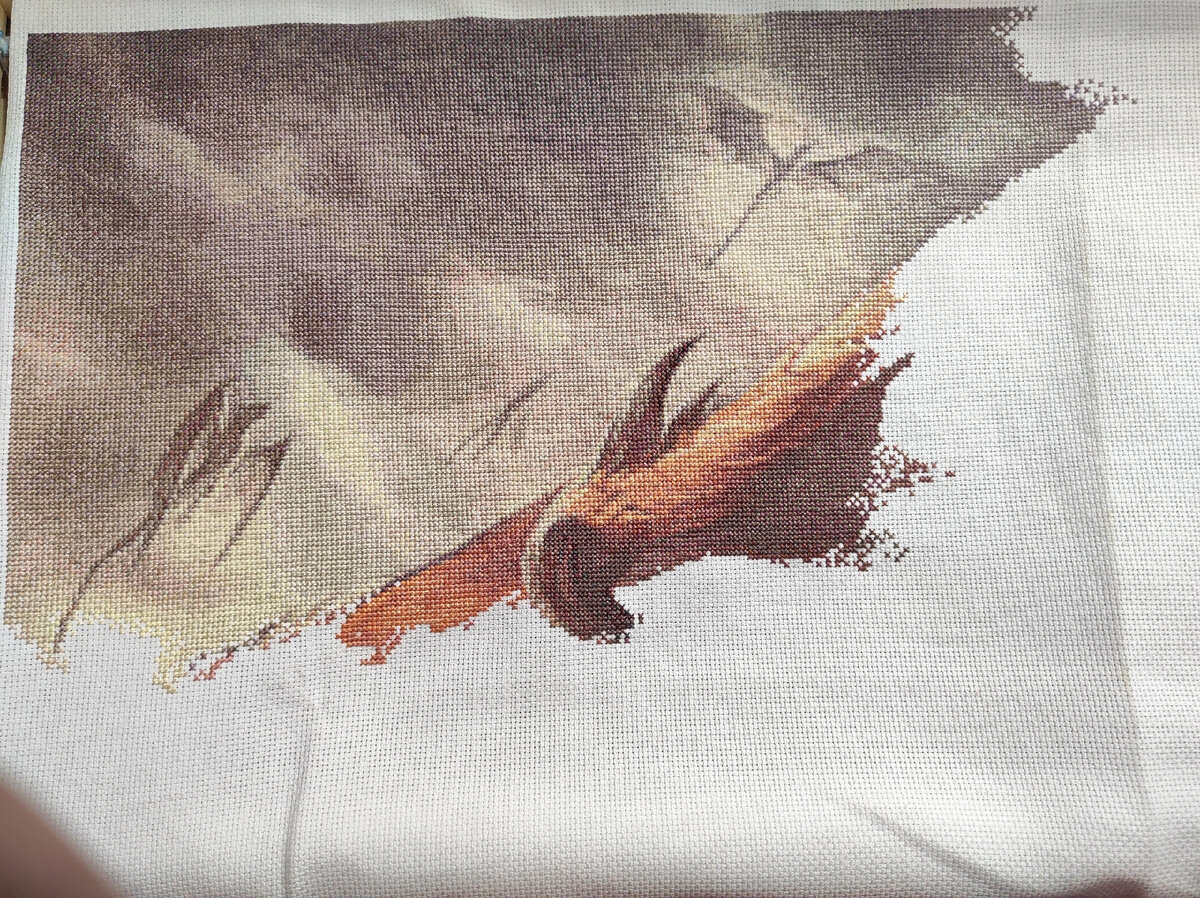1. "Две стихии" от Надежды Ильиной (Golden Rose). На своей любимой (и пока единственной) многоцветке я хотела вышить до красивой цифры в 10%. Немного не получилось, успела вышить только до 9,47%. Ну ничего страшного, вышитое за лето все равно очень явно бросается в глаза, крыло моего красного дракона хорошо подросло, да и небо увеличилось по крестикам. Кстати, я уже перевалила за середину вышивки и теперь следующая глобальная цель - добраться до правого края. Вышивка теперь выглядит так, в карусели можно посмотреть какой она была на начало лета. Здесь и дальше дополнительно прикладываю пр