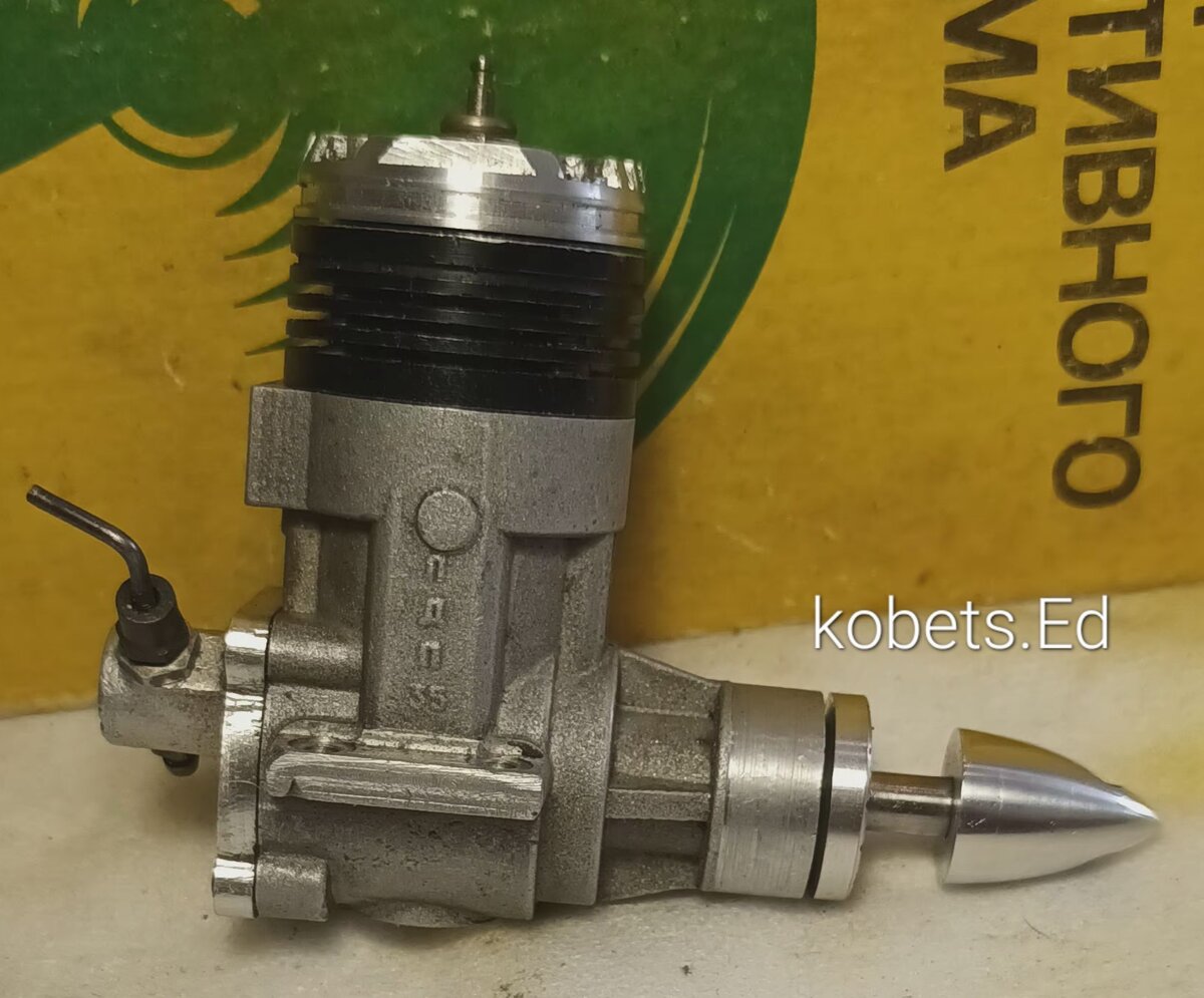 Приветствую! Очередная ленинградская самоделка: моторчик с рабочим объёмом 3,5 кб.см.. На картере есть буквы ЛДП-- есть мысль , что этот двс был изготовлен в ленинградском Дворце пионеров : попал ко мне из Питера , рабочий объём не подходит для спортивных классов . А вот для небольших пилотажек и копий в самый раз-- школьный размерчик))) . Двигатель изготовлен " кустарно " , без использования высокоточных станков и приспособлений. По своей компоновке и размерам напоминает МВВС 5 Р , конструкция поршня- скопирована с калильной Йены. Автор двс старался сделать моторчик - как можно проще и быстрее в изготовлении , чтоб не тратить на этот процесс много время -- больше потратить на полёты -тренировки. Калильный двигатель с воздушным охлаждением ЛДП- 3,5 имеет рабочий объём 3,47 кб.см.. Ход поршня 15,5 мм.. Диаметр цилиндра 16,9 мм.. Как видно--у двигателя простая форма : прямые линии и углы. Выхлоп направлен назад : удобно при установке на копии . Так же при падении пилотажной модели н