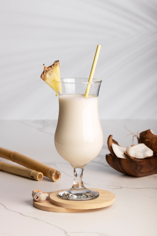 - Блендер: В блендере соедините нарезанные фрукты: бананы, манго, ананас. Добавьте кокосовое молоко и кубики льда. Для придания сладости можно добавить мед или агавовый сироп, но это на ваше усмотрение.