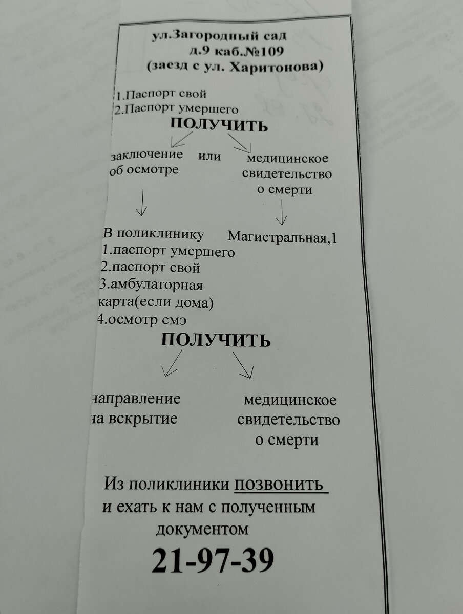 Привет, друзья! Несколько раз в неделю в поликлинику приходят родственники за справкой , благодаря которой можно избежать вскрытия. Эту справку дают не всем, а только тем, кто до этого находился под наблюдением, часто вызывал врача на дом или приходил на прием. Кроме этого ещё и куча факторов -нужна и важна . Врач заполняет справку в специальной программе, потом заведующая подписывает. Женщина, которая пришла нам на прием за справкой показала бланк, который ей выдали для дальнейших действий в траурной службе. Это же с ума сойти, какой квест. Стрелки какие-то. Если пойдешь сюда и сделаешь то, то поверни сюда. Если нет, то туда. Настоящий квест. Да уж, набегалась она. Я спросила сколько стоит сейчас весь обряд, она ответила что по минимуму вроде бы от 50000. Прямо бизнес какой то. Хотя чему удивляться, бизнес и есть, туда со стороны никого не пускают. Вот такой квест. Ваша Лейла. .