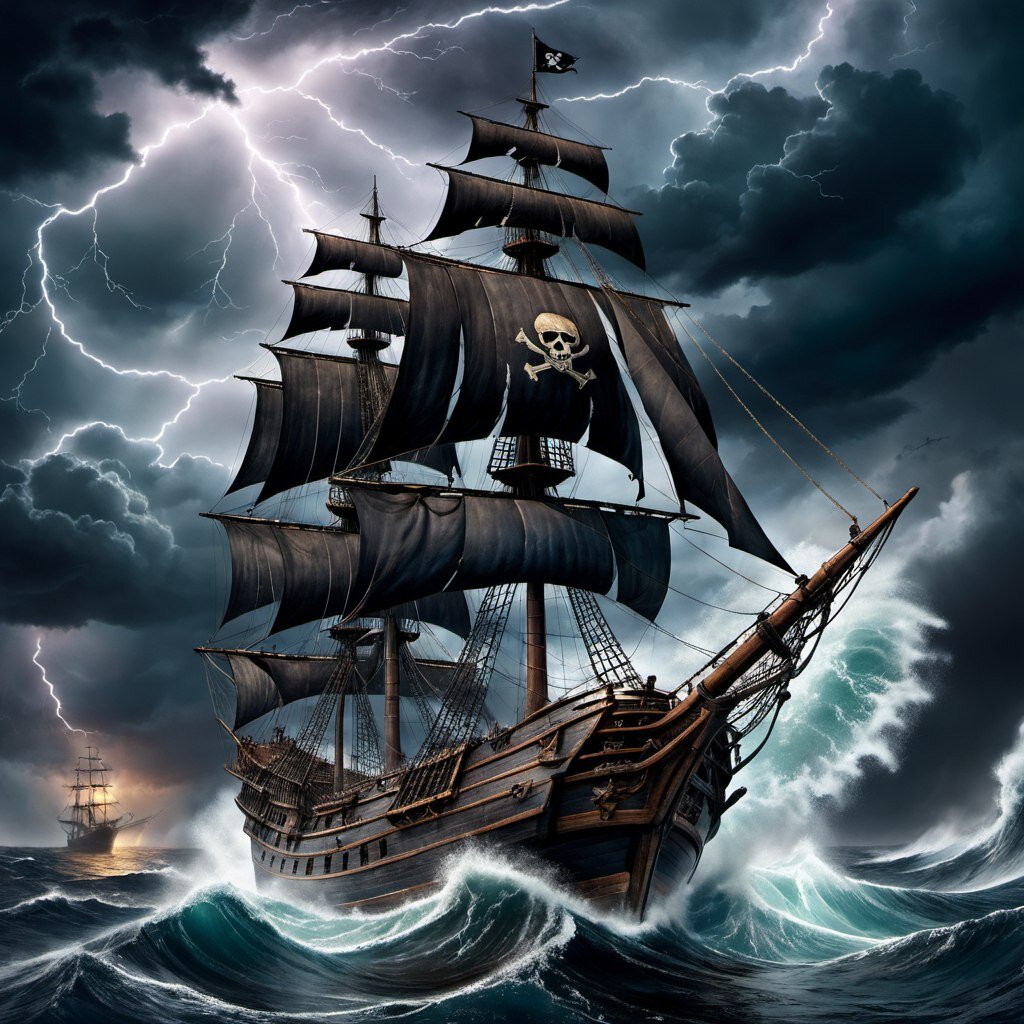 Коротко о... О пиратах ФЛИБУСТЬЕР === Паруса надуты ветром, Молнии сверкают рьяно, Флибустьеру то не страшно, Он хохочет дерзко, пьяно! === Крен корвета больше, круче, Буря злее и сверепей. Но пирату нипочём всё, Волны кажутся нелепей! === Выйдя в море седой капитан, Встав к штурвалу, раскуривал трубку. Много видел диковинных стран Из окна капитанской рубки. === Много лет бороздит он моря, Абордажи, жестокие схватки, Флибустьером зовётся не зря, Морю жизнь посвятил без остатка. == Он не мыслит судьбы иной, Только море, шторма́ и качка. И пеньковая трубка с собой Да заморский табак - пачка. _________________________________ Все картинки сгенерированы ботом Генера4