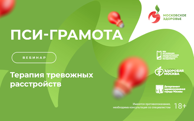 29 сентября в 15:00 (по мск) на цифровой платформе «Московская медицина. Мероприятия» в рамках проекта «PSY-Грамота» состоится вебинар «Терапия тревожных расстройств».