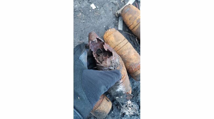 Саперы обследовали подозрительную находку и установили, что перед ними артиллерийские снаряды времен Великой Отечественной войны со следами сильной коррозии.