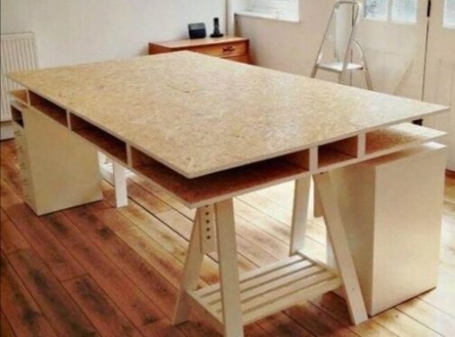 Плюсы такого стола, во-первых, он обеспечивает удобное рабочее место. На столе можно разместить все необходимые инструменты и материалы, что позволяет быстро и эффективно выполнять работу. Но кроме всего прочего, такой рабочий стол прекрасно организует рабочее пространство не толко на столе, но и под ним. Что в свою очередь очень "экономит" пространство.