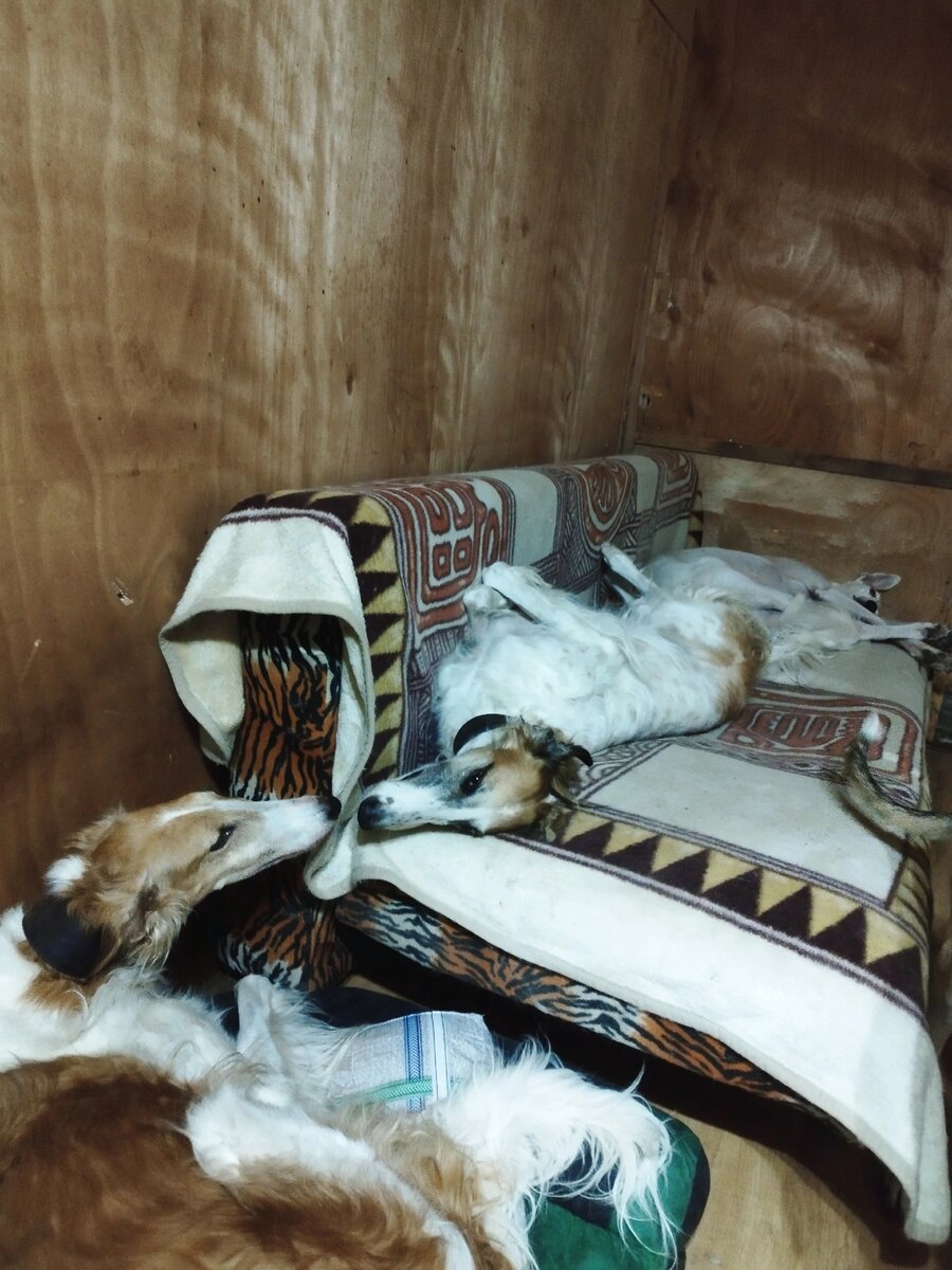 Борзая в квартире. Реально? Очень часто от потенциальных рук мы слышим, что борзая и квартира не совместимы. Мол большая собака, ей надо много места. Спешим заверить, что это очередной миф наравне с "борзым надо много бегать". Более комфортной и как бы это не казалось странным-маленькой собаки в ограниченном пространстве я не встречала. Дома борзая ведёт себя аналогично кошке, почти все время спит. Позовешь-подойдет, но никаких игрищ, беготни и никакой навязчивости по отношению к хозяину вы от неё никогда не увидите. У меня в доме сейчас живёт 12 собак, из них 9 борзых. И если не знать об этом количестве, вы никогда не догадаетесь, потому что дома-тишина, никто не лает, не бегает, и не доставляет друг другу никаких неудобств. У борзых теперь две отдельные комнаты, одну занимает Алтын, так как все еще болеет, в другой живут 6,и в основном доме еще 2. Так же в доме присутствует охрана в виде двух алабаев,ну должен же кто то носатых охранять😁 и на веселье один маленький норвич