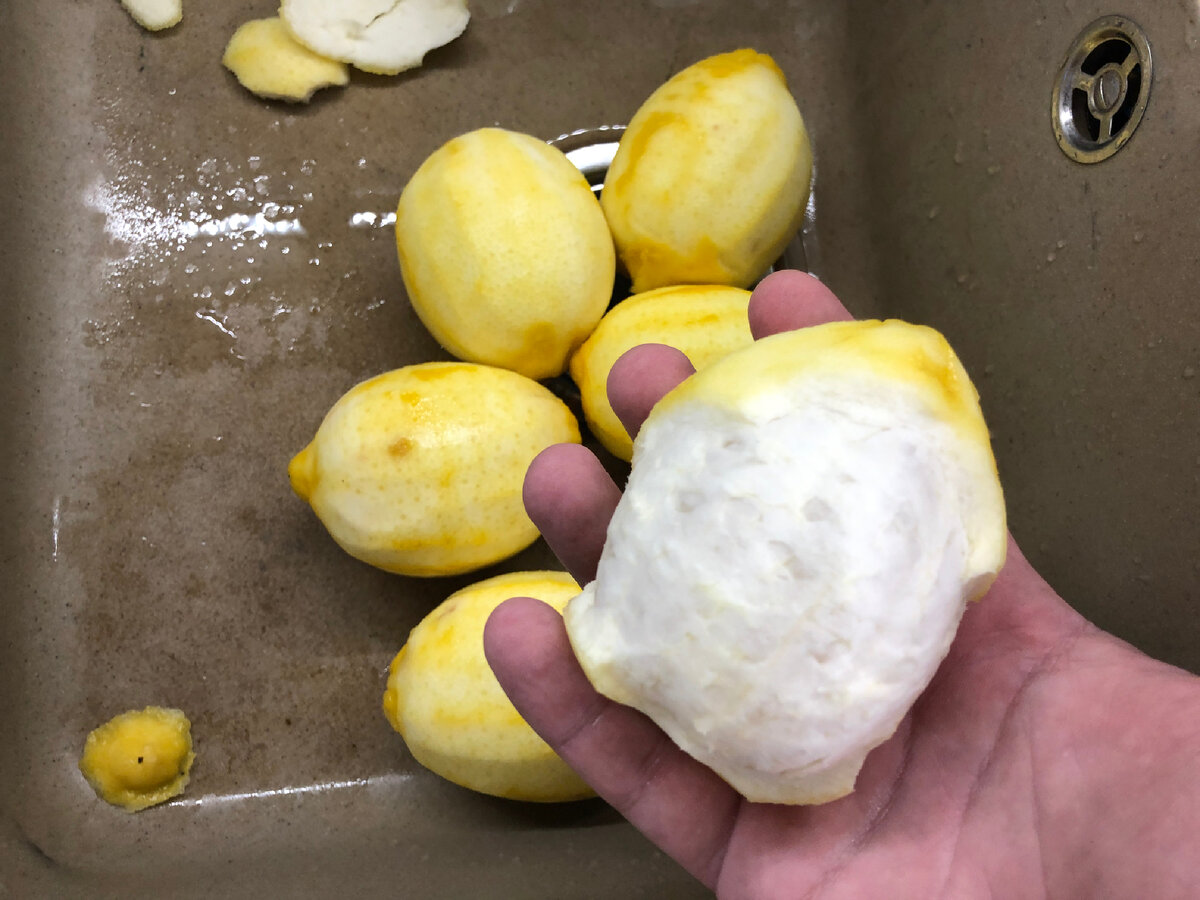 Приготавливая #лимончелло всегда задаёшься вопросом: куда лимоны то девать??? Если апельсины или лаймы ещё как-то уйдут в пищу достаточно быстро, то кислющие лимоны так быстро не сьешь. Если кто не знает что такое лимончелло и как его делать, то про это я уже писал. В общем прочитал я про лимонный спотыкач, ну и понеслась мысль по черепной коробке... Сегодня лимонов 7 штук, они достаточно крупные, поэтому цедры для основной домашней заготовки будет достаточно. А вот мякоть чтобы не утилизировать перерабатываем. Кстати, обратите внимание на толщину кожуры - правильные лимоны для лимончеллы. Очищаем и раздербаниваем лимоны до долек... ну или по несколько долек. Самое муторное это косточки достать. Опять же лимон с косточкой вроде как самый натуральный. Дольки нарезаны, сахар и специи для вкуса добавлены. Даже жопки с остатками цедры кинул - пусть проварится и отдаст немного вкуса. Доводим до кипения и провариваем 10 минут. Вдруг кто не знает что такое #спотыкач и как он делается, то подр
