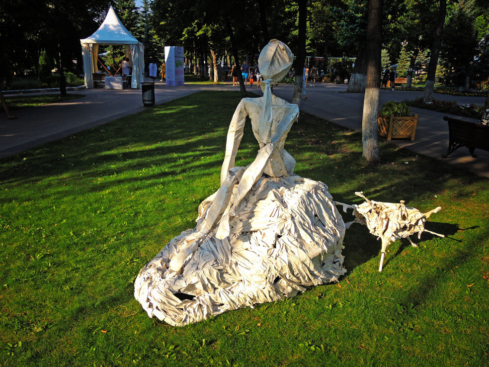 Ещё одна группа арт-объектов, которые я назвал «Ангелы». Снова самовольно, потому что снова никакой пояснительной информации тут не было. Но и тут вроде бы разночтений быть не может. Опять же не знаю, относятся ли эти фигуры как-либо к спектаклям театра «Пластилиновый дождь» или это просто фантазии художников. Равновероятно может быть и то, и другое.