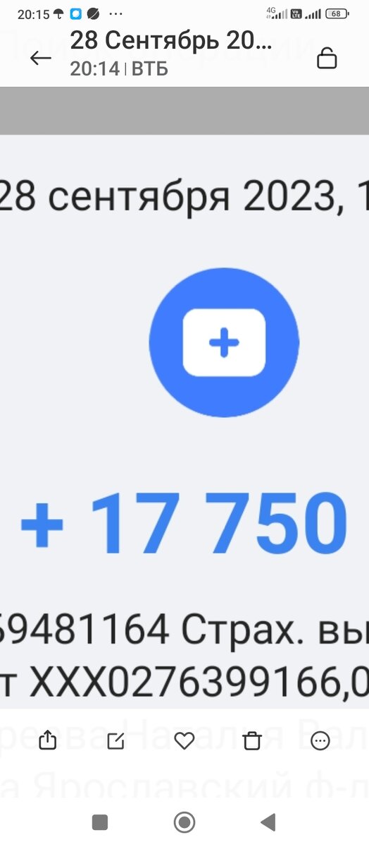 Привет, друзья! Я сегодня получила компенсацию за причиненный лёгкий вред моему здоровью, я ведь пострадала в ДТП, о чем писала вот тут=> Как и ожидала, сумма получилась не большой. Всего 17 750 рублей. Интересно, если бы я была на бл не 20 дней, а 21, больше бы я, получила? Ладно, подождем сколько нам за машину насчитают, а потом подадим в суд. ДМ тоже выплатили компенсацию за тяжёлый вред здоровью, но сумма оказалась вообще копеечной, потом про это отдельно расскажу. Надо претензию страховой компании подать в течении 10 дней, а уж потом идти в суд после их ответа. Даже интересно что по машине будет, думаю не сильно много нам дадут за неë, ну и ладно, так мы и протопчем дорогу в суд. Ваша Лейла💋