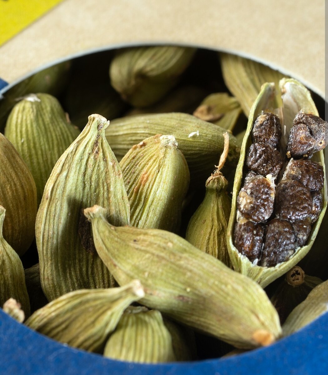 Добавлять кардамон в блюдо нужно осторожно, поскольку это сильная пряность. Одной четверти чайной ложки молотого кардамона вполне достаточно для ароматизации блюда на 5-6 человек.