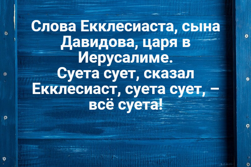 Доброго дня! Дивная книга есть в составе Священного Писания. И первые слова из этой книги о суете житейской знают многие, хоть могли и вовсе не знать откуда они взяты. Многие и не подозревают, что эта "Книга Экклезиаста", авторство которой приписывается царю Соломону, имеется в составе Ветхого Завета. Автор книги пытается уловить смысл жизни. Будто бы призывает нас сделать паузу, остановиться на какое-то время, чтобы мы задумались. Задумались о том, зачем мы живем, какова цель нашей жизни. Не слишком ли много мы суетимся, отдавая большую часть своего времени житейским заботам. В бесконечной спешке, суете, которая отнимает у нас столько времени, мы забываем о Боге, о жизни вечной, а ведь это так необходимо для нас...