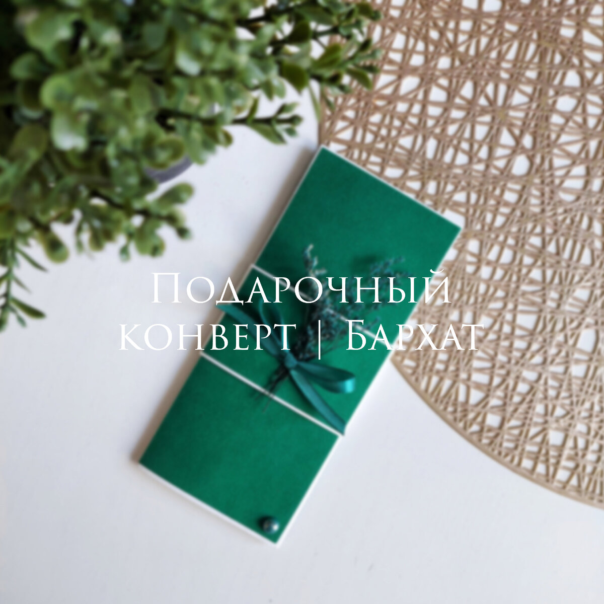 Привет ° Сегодня хочу поделиться с Вами моей очередной работой - подарочный конверт для денег с бархатистой текстурой, декорированым сухоцветом. Такой конвертик можно подарить любому человеку и по любому поводу. Изумрудный цвет универсален, подойдёт как для мужского пола, так и для женского. Может стать прекрасным дополнением к денежному подарку на свадьбу или на годовщину свадьбы. Для работы мне потребовалось: ▪︎ Бумага для акварели А4 (1шт) (рис.1); ▪︎ Бархатная бумага А4 (1шт) (рис.2); ▪︎ Ножницы/канцелярский нож; ▪︎ Двухсторонний скотч/клей; ▪︎ Линейка; ▪︎ Доска для биговки (можно использовать любой другой инструмент для сгиба линии); ▪︎ Декор: атласная лента, сухоцвет. Используя шаблон делаю основу и бегунок, благодаря которому конверт не будет открываться. Поверх приклеиваю бархатную бумагу и украшаю декором. ✔️ Готово Как Вам результат? Вручив такой конверт Вы подарите радость, улыбку и приятные эмоции. Спасибо за просмотр ♡ Поддержи пожалуйста лайком, если было инте