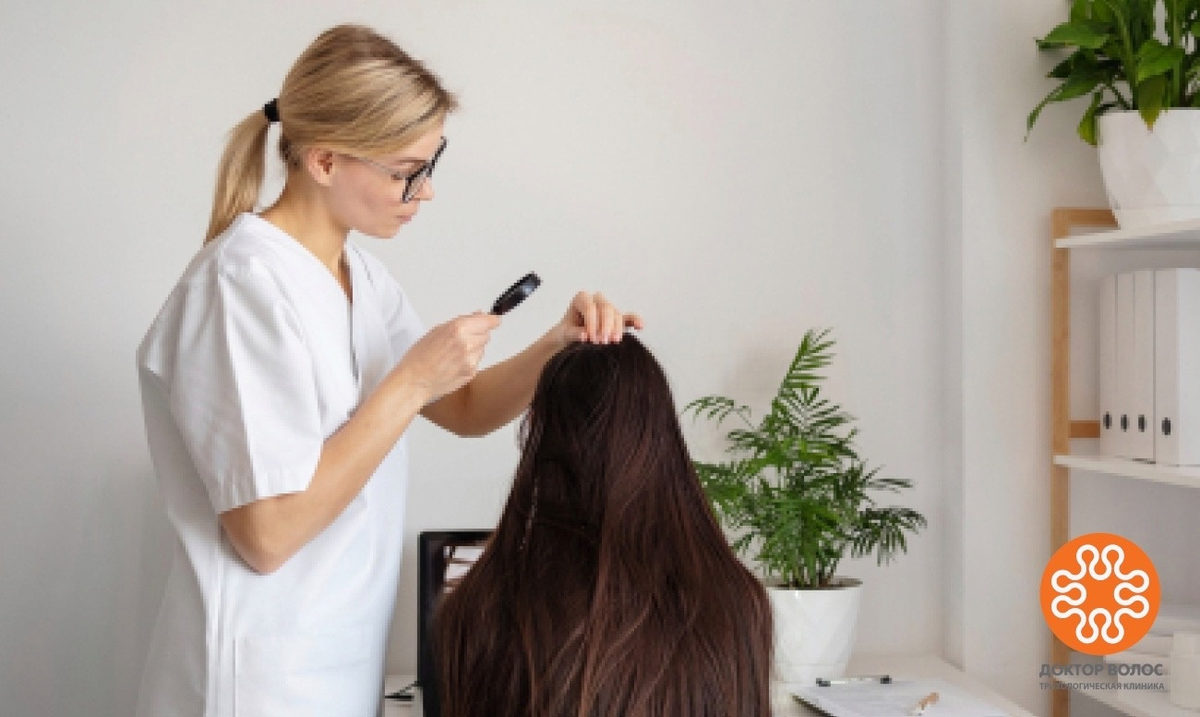 Наши пациенты обращаются к нам с различными проблемами: зуд, жжение кожи головы, и, конечно же, беспокойство по поводу выпадения волос и их истончения. И хотя каждый из этих симптомов может показаться не столь серьезными, это может быть лишь верхушкой айсберга более глубоких проблем. Именно поэтому, прежде чем начать лечение, необходимо точно установить, с чем мы имеем дело. Зачем, спросите вы? Потому что причины проблем с волосами и кожей головы могут быть разнообразными и связаны как с состоянием самих волосяных фолликулов, так и с общим состоянием организма. Волосы, можно сказать, служат своеобразным индикаторам нашего здоровья, отражая изменения и нарушения во многих системах организма, дефиците питательных веществ и гормональный дисбаланс. Трихологическая диагностика позволяет: Давайте подробнее узнаем о различных этапах и методах диагностики в трихологической клинике. Этапы диагностики Визуальный осмотр Первым этапом является внимательное визуальное исследование кожи головы и
