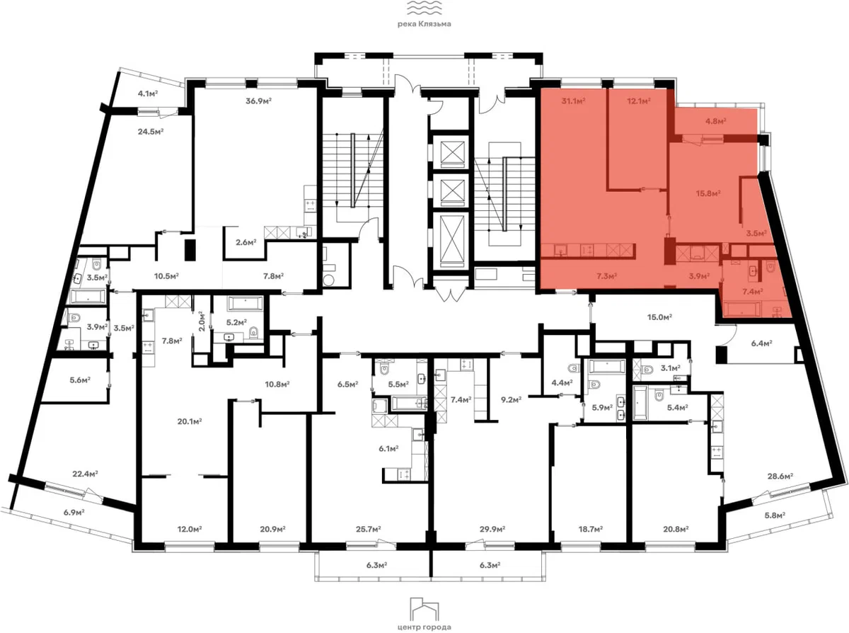 Расположение на этаже. Квартира подсвечена красным.