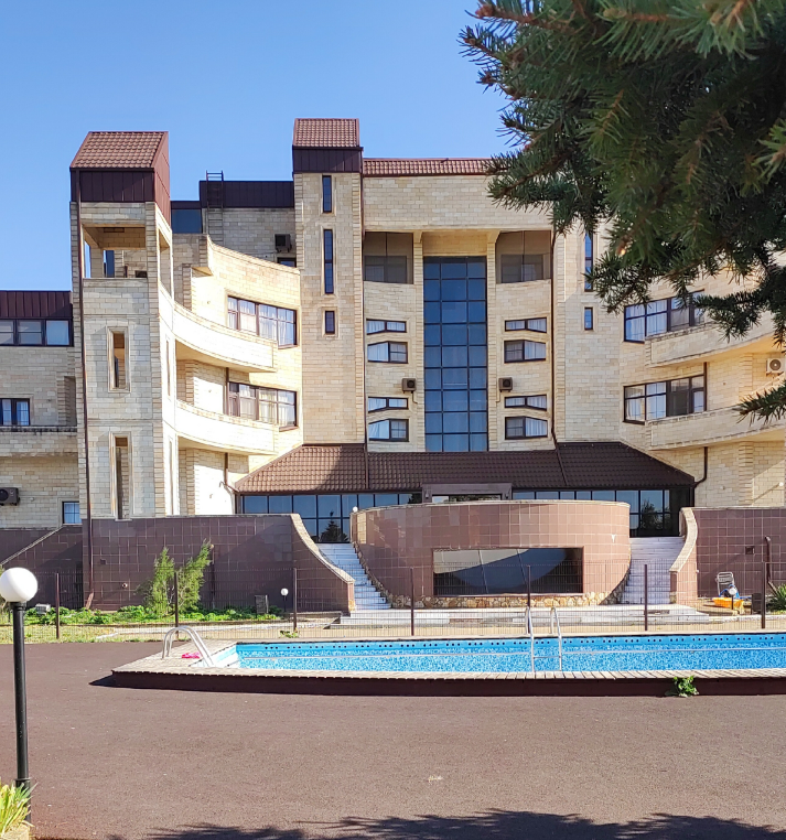 В объявлении о продаже уточняется, что отель находится в самом центре Сочи, в знаменитом парке «Ривьера». Площадь здания составляет 1286,3 м². Три этажа. В отделке комнат использовано сусальное золото. Интерьер украшают французские ковры и более 300 полотен российских художников.