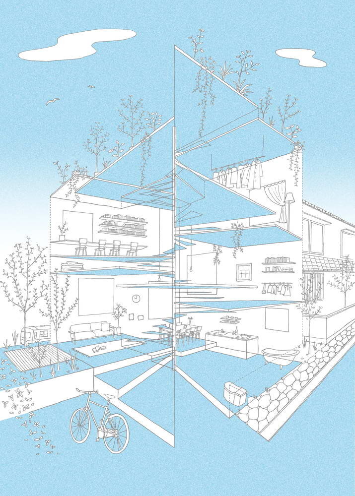 Было очень сложно придумать программу использования этого места после решения оползневых структур, их законов и возможных методов строительства. Маленький, но высокий дом на сложном участке площадью 101 м2 в Японии