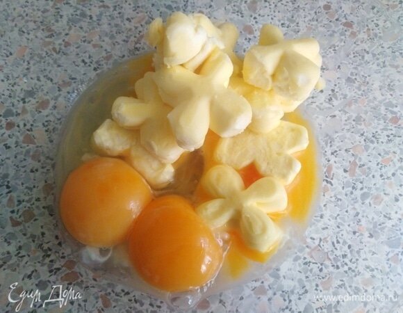 ягоды замороженные - 100г Шаг: 1 Желтки соединить с маслом. Шаг: 2 Добавить 100 г сахара, разрыхлитель. Шаг: 3 Всыпать муку. Шаг: 4 Замесить тесто. Разделить на две неравные части. Убрать на 30 минут в холодильник. Шаг: 5 Белки взбить с оставшимся сахаром и ванилином. Шаг: 6 Добавить сметану и 4 ст. л. крахмала. Перемешать. Шаг: 7 Ягоды смешать с 1 ст. л. крахмала. Шаг: 8 Большую часть теста выложить в форму. Сделать бортики. Шаг: 9 Перелить сметанную основу. Шаг: 10 Сверху выложить ягоды. Шаг: 11 Оставшееся тесто натереть на терке и обсыпать верх пирога. Шаг: 12 Выпекать в разогретой духовке при 160°C в течение 1 часа. Шаг: 13 Приятного аппетита!