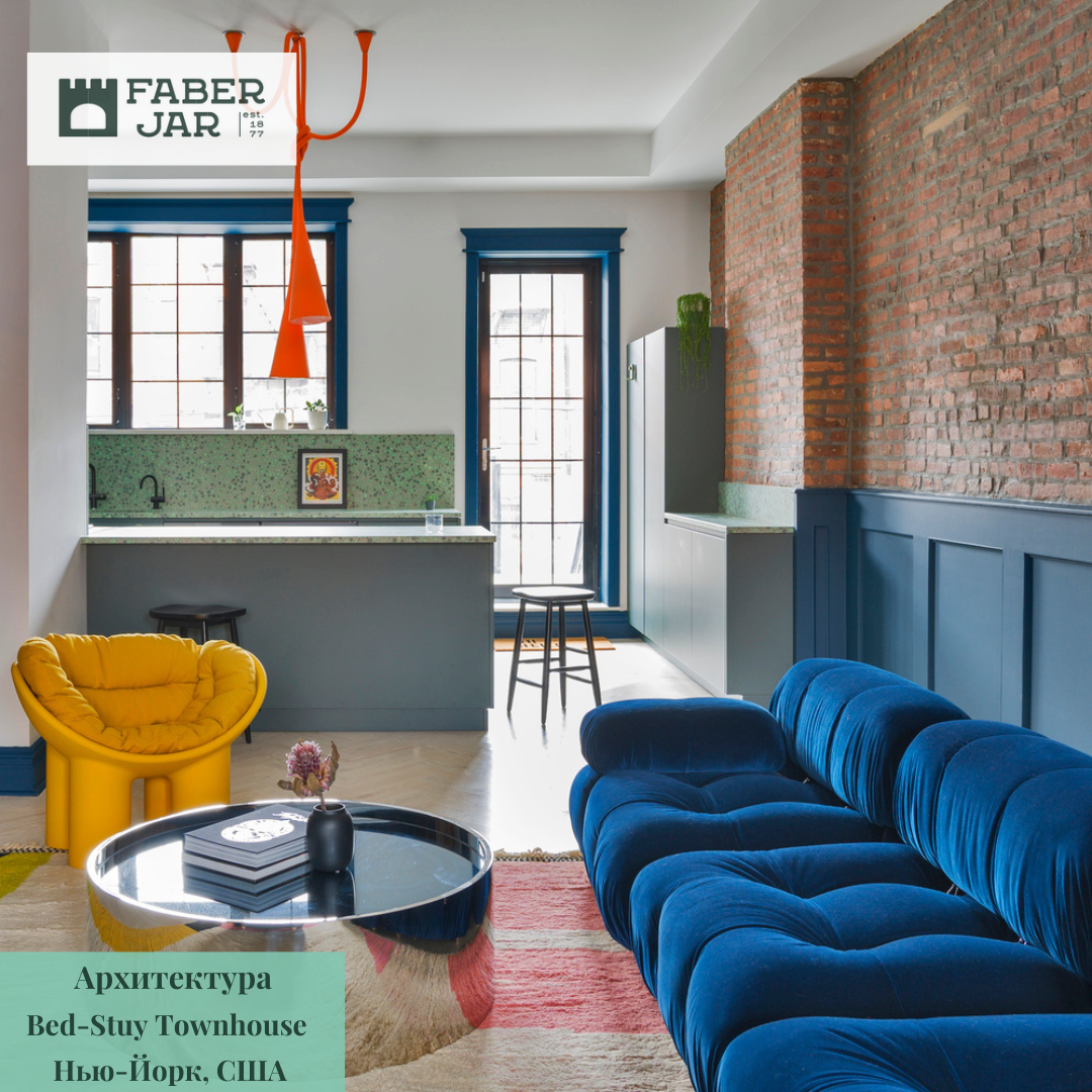 🏠 Проект Bed-Stuy Townhouse Renovation от Olbos Studio — реконструкция таунхауса 1800-х годов в Нью-Йорке с сохранением традиционных шероховатых кирпичей. 🧱 Традиционные шероховатые кирпичи стали фоном для этого удивительно красочного, но элегантного проекта-интерьера, где беседа между клиентами - юристом из Сингапура, увлеченным татуировками, и стратегом из Гонконга, разбирающимся в изобразительном искусстве, - и итальянским дизайнером привела к созданию игривого пространства, которое приносит радость и безмятежность одновременно. 🏚 Планировка жилой зоны была сохранена открытой, чтобы естественный свет проникал с противоположных сторон фасада в течение всего дня, усиливая восприятие редкого высокого потолка оригинальной конструкции. 🍽 Кухня, изготовленная на заказ, привносит в проект элемент кустарничества, делая его эксклюзивным и неподвластным времени. 🛋 Элегантный синий цвет панелей охватывает весь уровень гостиной, удерживая вместе красочные акценты и приглушая свет. В главно