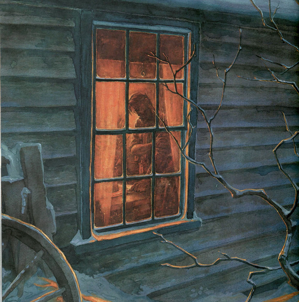 Посреди рамочки вырезал Матвей окошко, да такое, что сразу его и не приметишь. Поставил он раму к стенке, сел барина поджидать. Только полночь спустилась, стучит окаянный в матвееву избу: