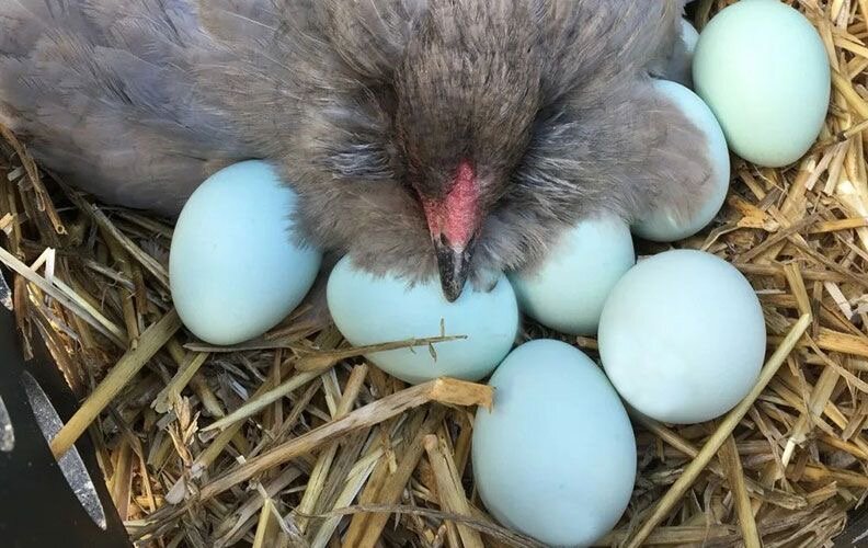 Амераукана – порода преимущественно яичного направления, выведенная в Северной Америке. Отличительная их черта – способность нести яйца голубого оттенка, а также хорошая яйценоскость, завоевала им популярность на континенте. Однако в России они встречаются очень редко, и этому есть свои причины. Яичная скорлупа состоит на 95-97% из карбоната кальция, поэтому изначально она белого цвета. Красный и коричневый цвет приобретает во время продвижения яиц по яйцеводу курицы. Он выстлан сосочками, выделяющими пигмент протопорфирин. Насыщенность окраски и цвет яиц зависит не только от породы птицы, но и от скорости продвижения по яйцеводу: чем медленнее движется яйцо, тем больше пигмента оно получит. Протопарфирин покрывает скорлупу только снаружи, изнутри она остается белой. Зеленая и голубая окраска получается иначе: за нее отвечает зеленый желчный пигмент биливердин (промежуточный продукт распада гемоглобина) и его производный ооцианин. Оба пигмента закладываются еще на этапе формировани