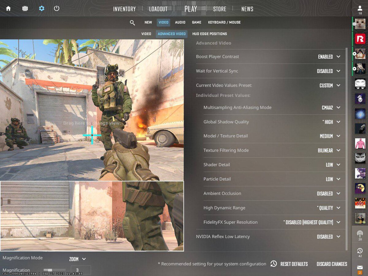 Добавили сбалансированные настройки игры и NVIDIA для производительности и графики в CS:GO 2.