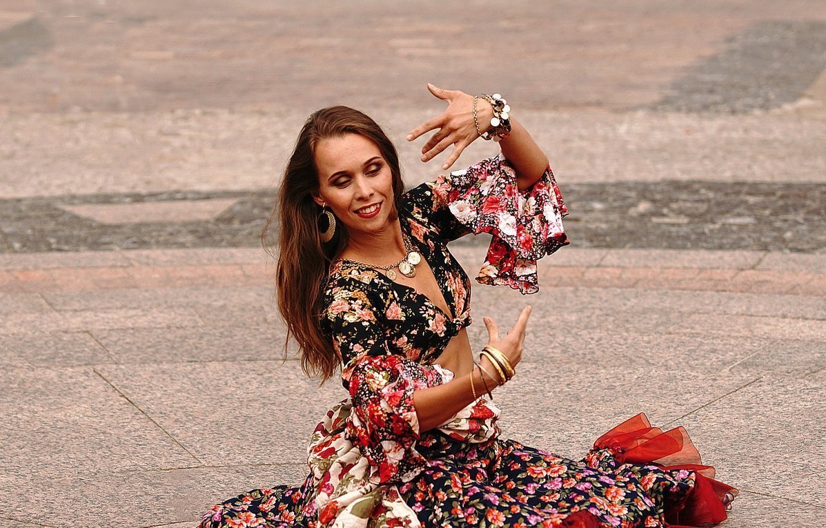 Немного кто знает, что яркое платье фламенко, которое часто используют в танцах, это младший брат как раз именно цыганских нарядов. Пышное, с многослойными юбками — может показаться, что такая вещь неудобна, но на самом деле это не так. Благодаря некой доли помпезности, платья с такими юбками мгновенно привлекали внимание, а это как раз было необходимо цыганкам, порой зарабатывающим себе на жизнь танцами на публике.