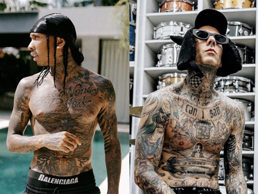 Для кого-то татуировки — часть имиджа, а для кого-то — стиль жизнь. Сегодня — о главных звёздных фанатах боди-арта. Эд Ширан Со своим цветом волос Ширан и так не затерялся бы в толпе, но решил стать ещё заметнее. На его теле около сотни татуировок: там и лев — в память о грандиозном концерте на «Уэмбли», где собралось 300 тысяч зрителей, и три боксёрские перчатки — в честь трёх аншлагов на Мэдисон-сквер-гарден, и, конечно, плюшевый мишка — в детстве Эда называли Медвежонком (Teddy). Трэвис Баркер Музыкант почти весь покрыт татуировками. На теле осталось несколько «белых пятен», но и они время от времени покрываются изображениями — там рисуют дети Баркера. Самой заметной татуировкой артиста можно назвать бумбокс на животе. Он набил его в честь своей подростковой любви к брейк-дансу. «Это документирование моей жизни: людей, вещей и времён». Меган Фокс Раньше у неё было больше татуировок. Фокс постепенно избавляется от некоторых рисунков с помощью лазерной хирургии. Например, актриса стёр