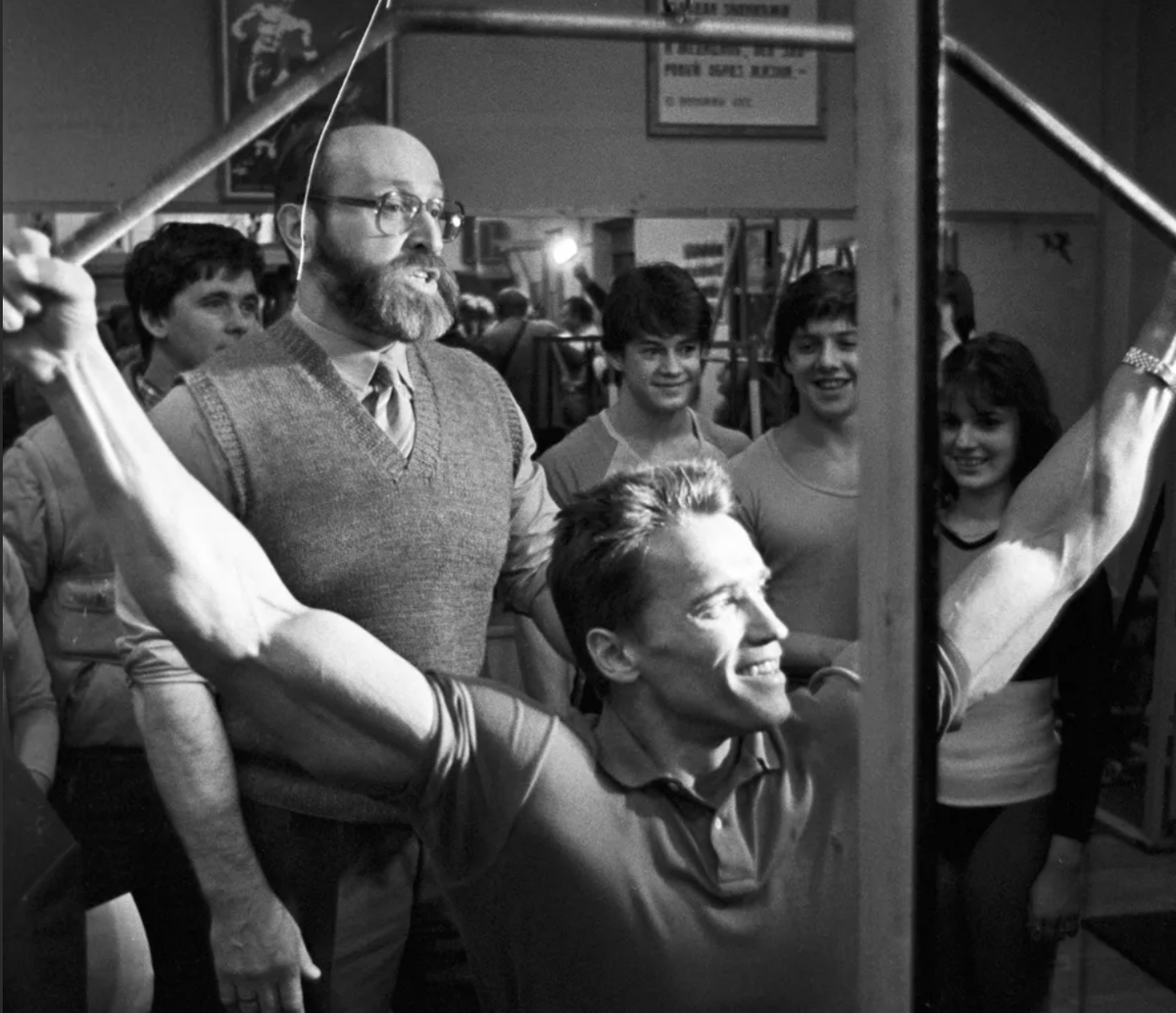 Но вернувшись в спорт, пусть и «оздоровительный», могучей рукой смог пожать руку Арнольду Шварценеггеру в 1988 году, когда «железный Арни» приехал в Москву на съёмки к/ф «Красная жара».