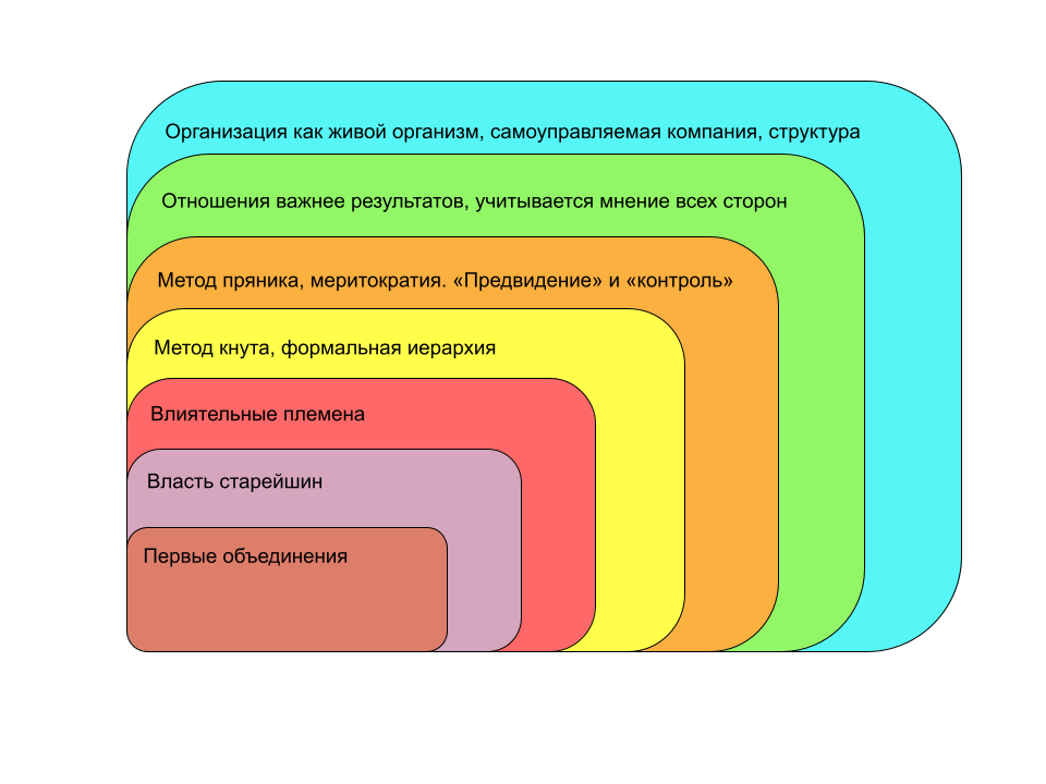 Система кругов в холакратии организована от внешних кругов к внутренним и выглядит примерно так: