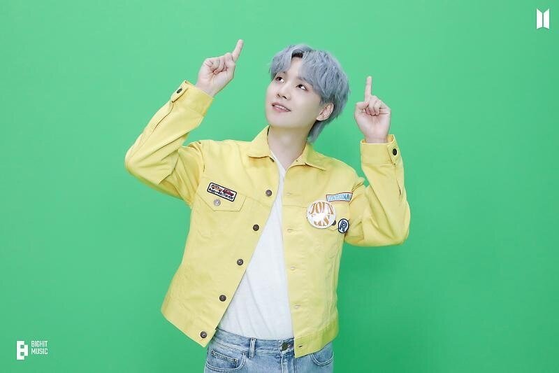 Хоби написал, что смотрит эфир перед тем, как отдать телефон, и считает, что Юнги очень идет прическа.
