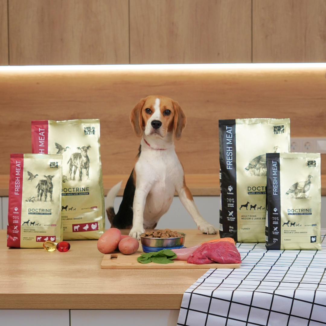 За первые 12 месяцев вес щенка среднего размера, к которым относится бигль, увеличивается в 30–40 раз. В возрасте 1 год бигля постепенно можно переводить на корма серии Doctrine Fresh Meat для взрослых собак. Рацион имеет оптимальную калорийность, 3 вида мяса в составе, а также нескольких видов клетчатки, чтобы поддерживать вес бигля в пределах нормы.