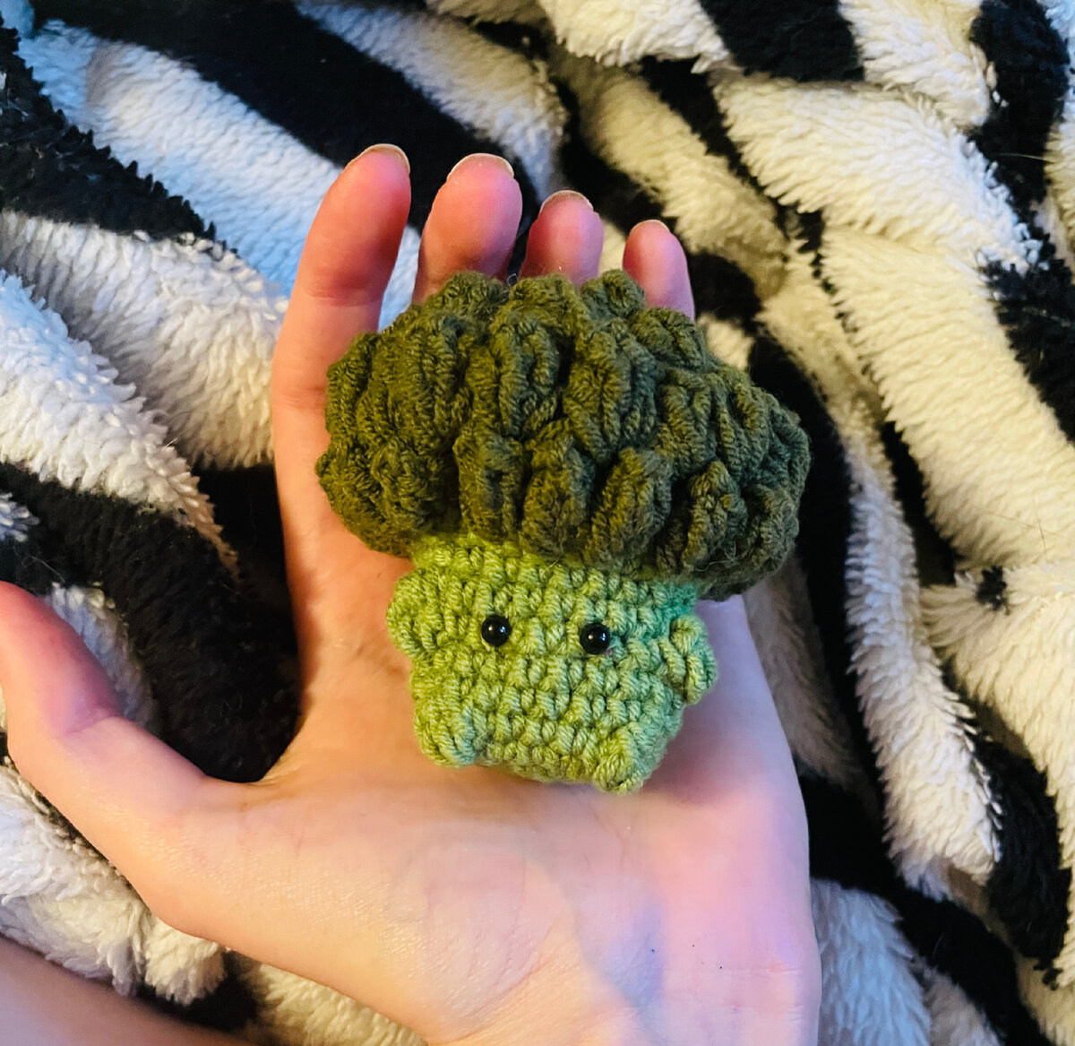 Всем приветик 👋 Сегодня предлагаю немного оторваться от своих дел и вместе связать этот прелестный брелок. Малыш брокколи🥦 , очаровал меня своим видом. А еще я очень люблю зеленый цвет, так что связать его для меня огромное удовольствие. Ну что ж давайте приступим 😋 Для этого красавчика нам понадобятся: Условные обозначения: КА – кольцо амигуруми сбн – столбик без накида сс – соединительный столбик пр – прибавка вп – воздушная петля Попкорн это – несколько столбиков с накидом (как правило, 5 столбиков с накидом), провязанных в одну петлю и объединенных одной вершиной. Шишечка 1 ряд: 6 сбн в КА. Сс 2 ряд: 6пр (12). 3 ряд: (сбн, пр)х6 (18). 4 ряд: (сбн, пр, сбн)х6 (24). 5 ряд: 9 сбн, шишечка, 5 сбн, шишечка, 8 сбн (24). 6-7 ряд: 24 сбн (24), 2 круга. 8 ряд: 8 сбн, шишечка, 8 сбн, шишечка, 6 сбн (24). 9-11 ряд: 24 сбн (24), 3 круга, сс. 12 ряд: Темно-зеленый, 2 вп, 18 попкорн (5 ст. с/н) (18), 1 вп, попкорн, пропустить 1 петлю, 2 попкорна, пропустить 1 петлю, попкорн, (2 попкорна, про