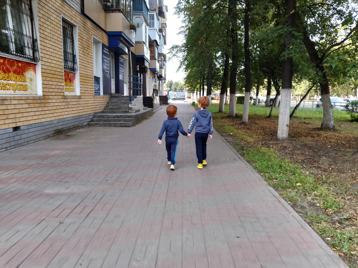 К слову о своих детях, я начала отпускать идти вперед сначала Дениса, когда родился Никитос. Мы тогда везде ходили с коляской, Дениса за руку держать неудобно. Когда появилась Алиса. Стало ещё сложнее. Никита с Денисом научились ходить вместе за руку, уходили вперёд, а я с малышкой в коляске за ними.