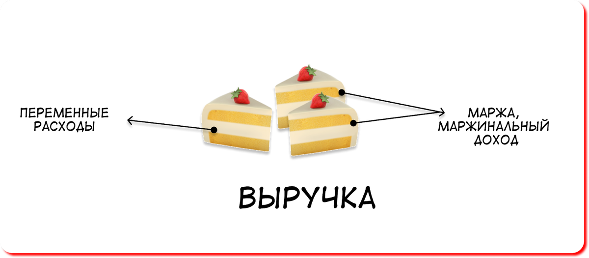 Составляющие формулы — выручку и переменные расходы — разобрали в предыдущем разделе. А визуально все это можно представить так: