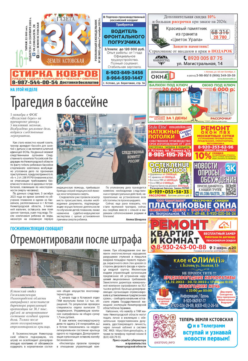 Газета "ЗЕМЛЯ КСТОВСКАЯ"№ 38 (985) от 07.10.2023г.
