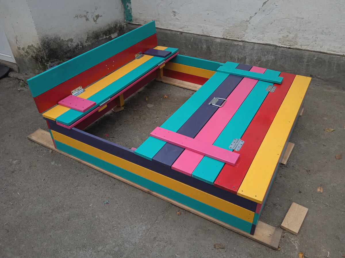 Песочница - трансформер. Как собрать самостоятельно С чего начать собирать? В начале определитесь., где она у вас будет стоять на земле или на заасфальтированом участке. Это имеет большое значение, для долговечности изделия. Я рекомендую своим заказчикам, ставить рейки или доски , по периметру песочницы. Это увеличит срок эксплуатации её. Итак, с выбором места определились. Теперь нужно сделать расчёт по размеру. На своём опыте убедился, что высота песочницы должна быть не менее 25 - 30 см. Что касается ширины и длины то тут есть свои моменты. Так все будет зависеть от доски которой располагаете. К примеру если вы хотите собрать небольшую песочницу, то вам будет достаточно с размером 120 " 120 " 30 см. Этого размера хватит для одного или двух маленьких детей. Получается на этот размер вам понадобится , для нижней части 12 шт отрезков доски шириной 10 см , а вот длина будет немного отличаться ,6 штук нужно сделать длиной 120 см, и 6 штук длиной 112 см. Объясняю за