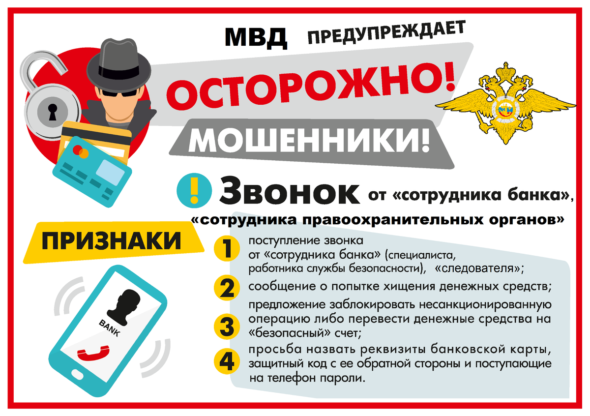 Управление МВД России по городу Чебоксары напоминает жителям, что ни сотрудники силовых ведомств, ни работники банков никогда не будут звонить и п
