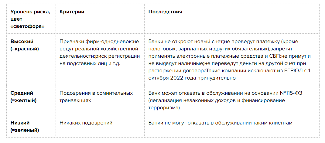 В России запущен эксперимент «банковский светофор». Разбираем, в какой цвет «светофора» вас окрасит Центробанк, почему и что делать, если вы попали в «желтую» или «красную» зону. 1 июля 2022 года все компании разделили на три группы — исходя из риска подозрительных операций. Центробанк определил критерии отнесения (Федеральный закон от 21.12.2021 №423-ФЗ). Самых высокорисковых объединят в «красную» группу. Банки не открывают им или блокируют счета, отказывают в обслуживании — а деятельность проверяет полиция и налоговая. Как не попасть в «желтую» и «красную» зоны и при этом сэкономить на налогах, знают в Главбух Ассистент. Эксперты на связи с налоговой, Минфином и другими ведомствами. Доверьте бухгалтерию профессионалам и получите месяц обслуживания в подарок. Кто оценивает компанию «Цвет» организации или ИП определяет банк, в котором тот обслуживается. Данные обо всех компаниях поступают в систему Центробанка «Знай своего клиента». У всех банков есть доступ к платформе. Любая кредитна