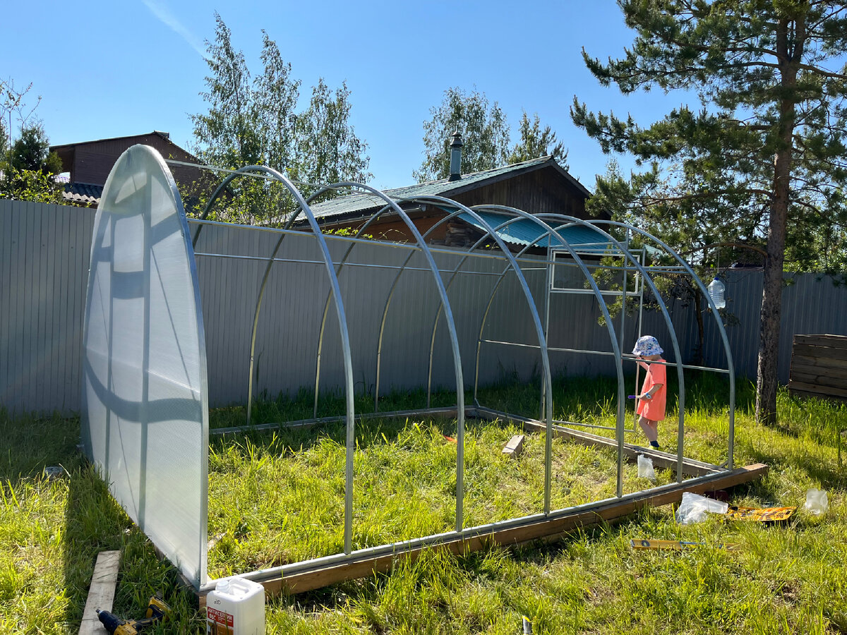 Добро пожаловать на канал Юля Дома. Подписывайтесь, чтобы не пропустить новые публикации о доме, участке и жизни в СНТ 💚 Первая часть серии статей «Итоги теплого сезона 2023» ⏬️ Во второй части хочу рассказать про теплицу. С момента переезда очень хотела поскорее её приобрести. Но в первый теплый сезон было много других задач и на теплицу просто не хватило ни времени, ни сил, ни денег. В этом году моя мечта сбылась! Только немного позже, чем хотелось бы. Теплицу установили в середине июня. Соответственно, сдвинулись все посадки, первый урожай, и так далее… И ещё одна загвоздка случилась - не успели сделать грядки в теплице. Поэтому, сажала всё в мешки и ведра. Об этом эксперименте ⏬️ Теперь о нашей теплице. Заказывала в местной фирме по производству теплиц из поликарбоната, которую нашла на Авито. Быстро сориентировали по видам и стоимости. Привезли тоже быстро - через 4 дня. Параметры нашей теплицы: Это стандартная теплица. Многие покупают именно в этих параметрах. Стоимость так