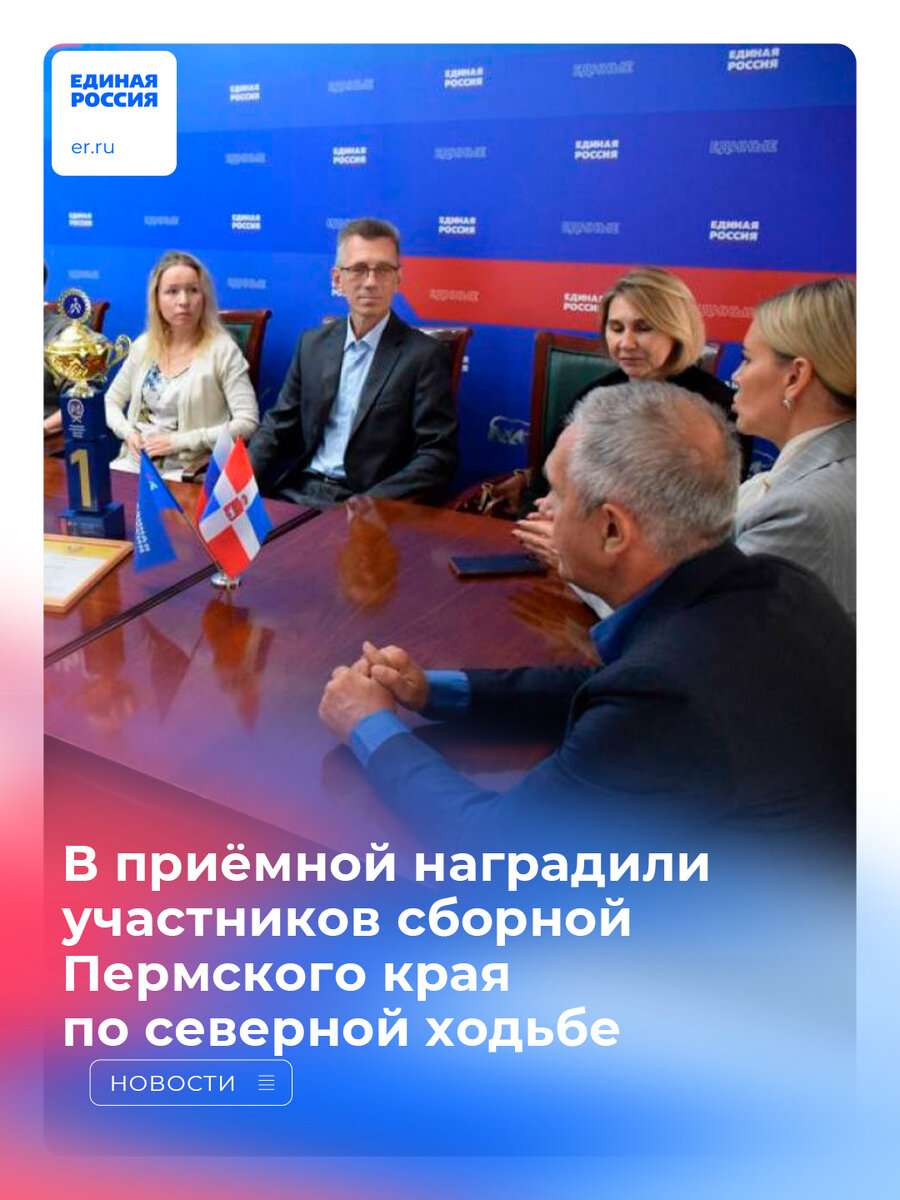 📌Центр гражданских инициатив «Единые», открытый на площадке региональной общественной приёмной, посетила сборная Пермского края по северной ходьбе. Встречу со спортсменами провела заместитель руководителя приёмной, член Генерального Совета Партии «Единая Россия» Елена Савельева