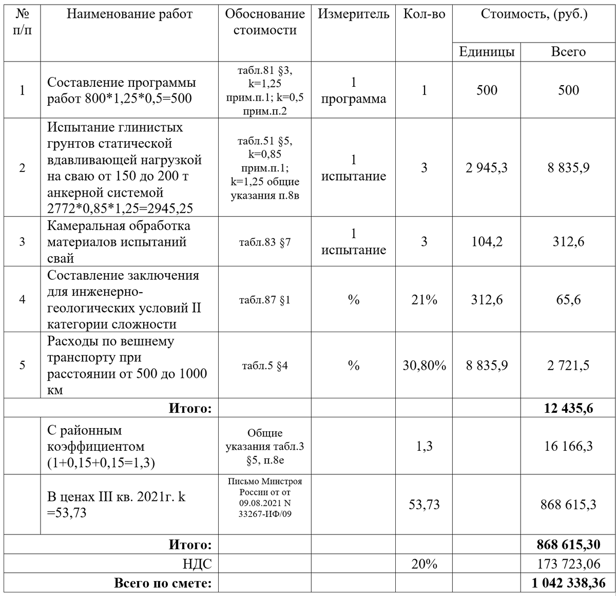 Таким расчетом возможно воспользоваться при составлении сметы на статическое испытание свай.