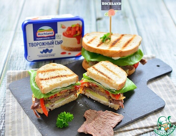 Рецепт «Сэндвич с говядиной и творожным сыром»: