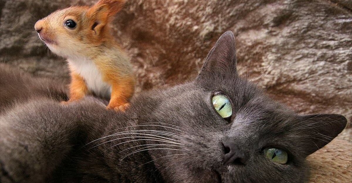 Чудеса случаются: Кошка спасла новорожденного парализованного бельчонка и приняла в семью