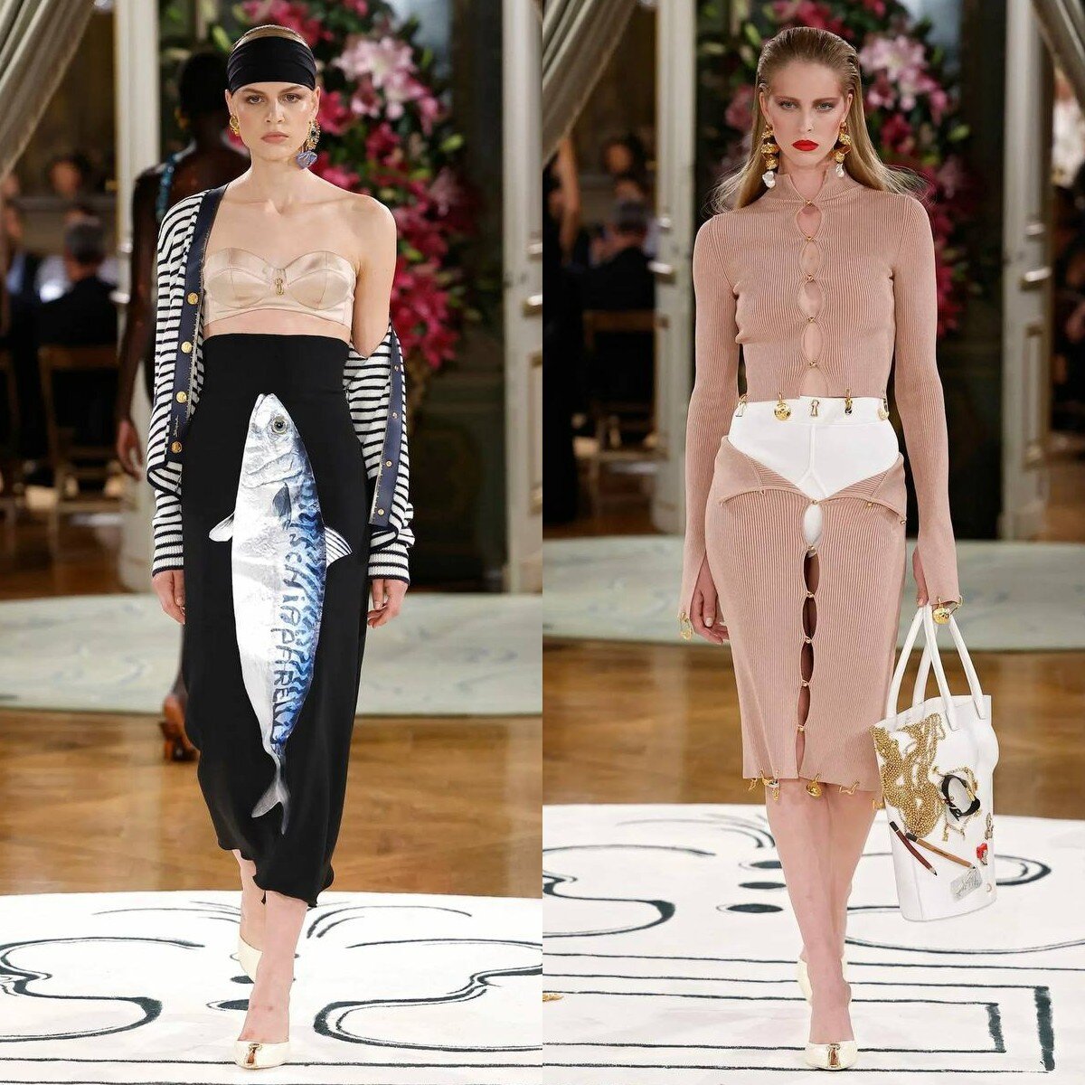 Белье, скумбрия и сестры Дженнер: чем запомнится показ Schiaparelli