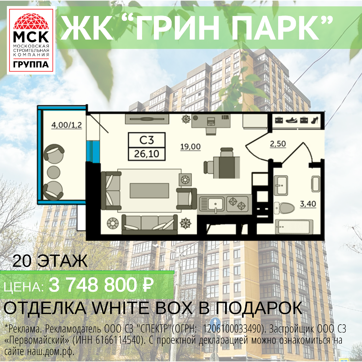 Новый жилой комплекс «Грин Парк» от компании «МСК», введён в эксплуатацию в июле 2023 года. В настоящее время здесь есть возможность приобрести уникальные квартиры от застройщика по выгодной цене.