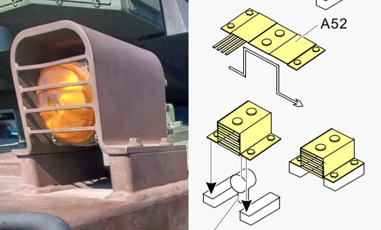 Не знаю точное название этих устройств, но по логике и внешнему виду напоминают габаритные огни советских танков. Потому так и будем их называть.