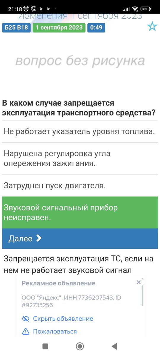 Очередные вопросы которые появились в экзаменационных билетах. Кто готовится к экзамену в ГАИ, необходимо знать правильные ответы. Изменения в этих вопросах коснулись неисправностей транспортных средств. Данные вопросы действуют с 1 сентября 2023 года. Номер билета и номер вопроса в левом верхнем углу. В вопросе спрашивают про неисправеость, которая запрещает эксплуатацию. Эксплуатация запрещена при неисправности Звукового сигнала. Запрещено движение во время дождя или снегопада, если неисправен стеклоочиститель со стороны водителя. Заметьте, запрещено движение. В следующих вопросах спрашивают про неисправность, которая разрешает эксплуатацию. Похожие 2 вопроса и совершенно 2 одинаковых ответа. Запомнить легко. Ответ, запрещается. Другие изменённые вопросы от 1.09.2023г. Можно прочитать здесь. Буду рад если эта статья вам будет полезна. Ставьте лайк. Удачи на экзамене.